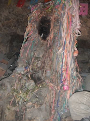 We went to a place where "TIO" - the devil look-a-like god of minerals was. Here we offered coca leaves and 96% alchole. Pedro explained about mines, miners, life style of miners etc here.