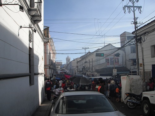 まぁ、フアンがつかまらないので宿探しです。「Residencial Sumaj」というのが安くて駐車スペースもあるのですが、マーク&クレアが前回泊まってよくなかった、というのでスキップ。ロンプラに載っている「Hostal Campana de Jesus」に行って見ました。バイクは駐車できますが個室80ボリ(シャワー・トイレ付。WiFi、朝飯付。)と高い。悪くは無いのですがまだ時間が早いので他をあたってみました。