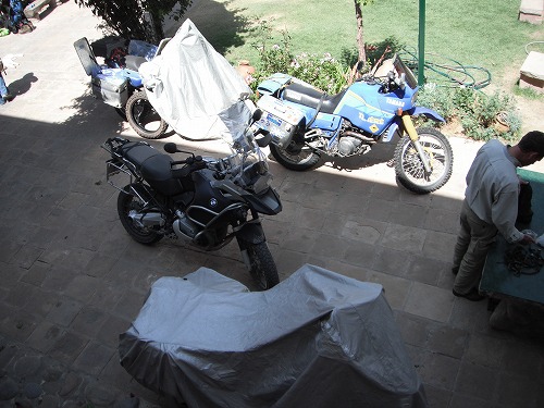 Back to the hostel, a new YAMAHA XT660Z TENERE arrived. They were Daniel and Evlyn from UK. Although they were 2up, their luggages were really minimal. Nice.