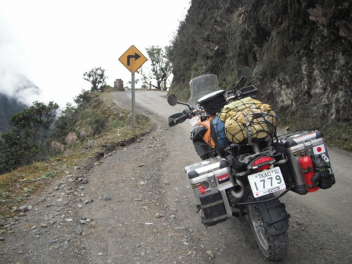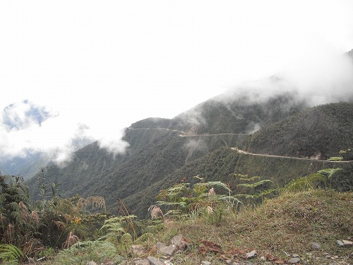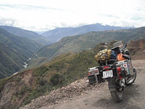 ラパスまで舗装路を走ります。所々崖崩れで舗装が持っていかれたのでしょうか、ダートになっていますが、ワインディングの気持ちいい道ですね。風景もなかなかです。標高が上がるにつれ寒くなっていきます。昨日GPSで見るのを忘れましたが、最高点は4,670メールくらいです。寒いわけだ。