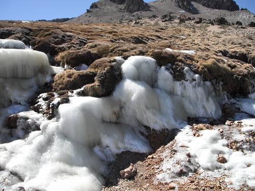 カニャウアス(Canahuas)から左にそれてチバイまで。途中で滝(?)が氷になってました。どうりで寒いなと思ってGPSの高度計を見たら4,400メートル超えてます。