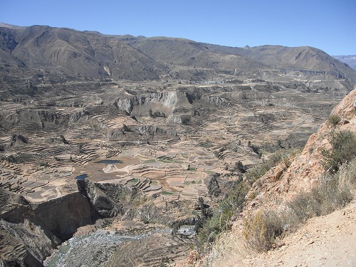 渓谷は段々畑がインカ時代のあったりしてグランド・キャニオンとは全然感じが違います。それにしてもインカはよくこんな大規模で段々畑を作ったな。
