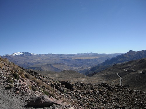 From the pass, he road started to descend to Chivay - from 4,882 50 some 3,000m. As I descent it got warmer.