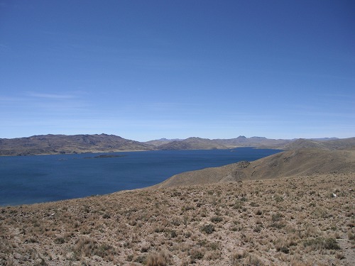 At Canahuas, I turned left to Juliaca - Puno. There were herds of Vicna and Alpacas, shnow capped mountains, and a beautiful lake, the scenery was excellent on the way.