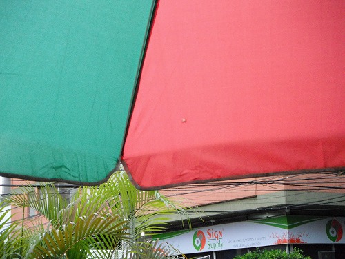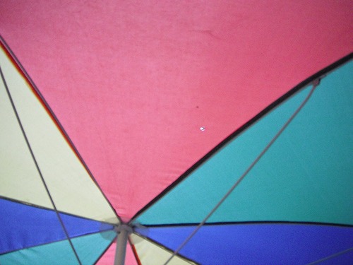 パラソルに穴が空いてるのが見えますか?