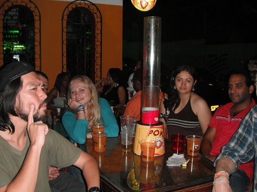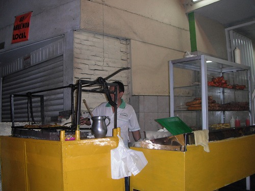 いやー、昨晩のナイトアウトは楽しかったですねぇ。カナディアンKRL3人衆の若手デレックとコーリンがコロンビア人のお姐さんをつかまえてダンスしたり。お姐さんの1人は「チノが欲しい」とデレック(中国系カナダ人なので)を名指しで指名。デレックはお姐さんにお持ち帰りされるか?と思いきや、ワシ等と一緒に4時前に宿に引き上げました。ローラに「早く引き上げるのは朝起きてからでしょ」なんて言われてました。みんな腹を空かしていたので近くの屋台でホットドッグをほおばりました。