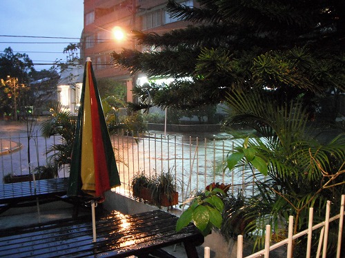We watched a movie "The A-team". It was quite good. But while watching the movie, a heavy storm came. The rain was puring, thunder roared. I looked down the street from the window, it was flooded... I wonder if the way to Popayan would be safe...