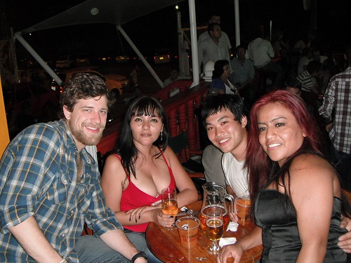 夜はみんなで映画を見ました。今日は殆ど何もしなかったですね・・・。と、思ったら宿のレセプションの姐ちゃんが「11時過ぎに遊びに行こう」、ということになりカナダKLR3人衆とともに出かけることになりました。