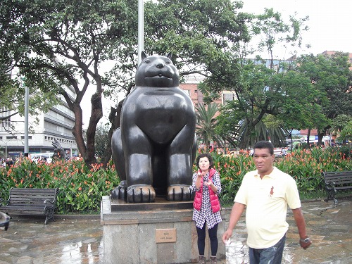しかし食後のコーヒーを飲みながら話し込んでいたら、雨が・・・。かなり降ってます。しばらく雨脚が弱まるのを待ってちょっと散歩。例の変な彫像がある公園に行きました。写真を撮っていたらまた雨脚が強まったのでメトロの高架下で雨宿り。そうしたら教会の勧誘が来ました。スペイン語わからんちゅうに。