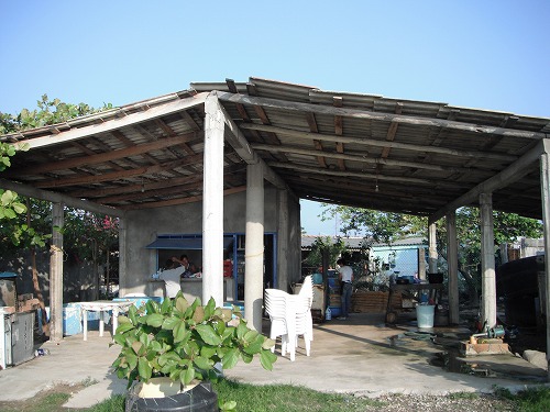 魚とタマレスの昼メシを頂いてクライディーの職場へ。海まで歩いて5分。漁港のタコス屋です。伯母さんの店を手伝っているとのこと。客層は叔父さんたちに漁師さん。それにしても親戚が多いです。会う人会う人が叔父さんに叔母さん、従兄弟だったりします。全員覚えるのに何ヶ月かはかかりそうです。近所のガキたちがやって来たのでしばらく相手になってもらいます。