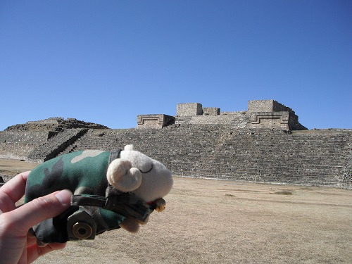モンテアルバン、イイですよ!遺跡としてはテオティワカンよりもずっとイイ。やはり修復はコンクリートでされてますが…。ずっと見たかった踊る人々のレリーフをこの目に見る事が出来て、感無量。あー、来て良かった!