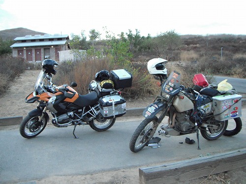 バーガーキングに戻りシゲさんと友達のエルトンの家に行きました。昨日出張から帰ってきたばかりで、今日は仕事帰りで忙しいのにワシらを泊めてくれるなんてなんて優しいのでしょう。彼はBMW R1150GSに乗っています。41リッターのビッグタンクが付いています。スゲェ。 色々旅やバイクの話で盛り上がりました。明日はサンディエゴを目指そうかな。