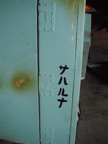 栄エンジンがカウルとプロペラの隙間から見えています。カッコいいなぁ。何とヒツジ、零戦の尾翼に乗っかりました! 次は目を桜花のにむけます。桜花、主翼や尾翼が木製です。強度が無いせいでしょうか、翼には「サハルナ」、「オスナ」と書かれています。なんとヒツジ桜花の鼻先に乗りました!