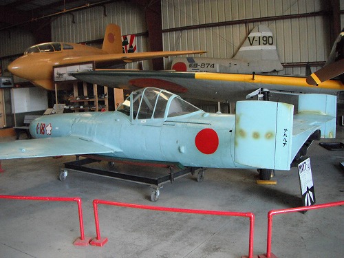 We found Ohka (Cherry Blossom), the rocket propelled aircraft used in the suicide mission. DVD was played to explain Ohka's mission and technique behind. Shige was impressed by Ohka.