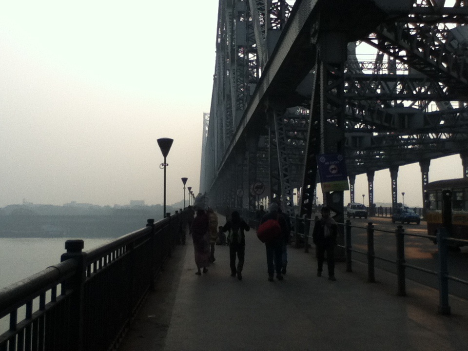 フーグリー河に掛かるハウラー橋は近代的な鉄骨の橋。結構な長さだけど、歩いて渡る。