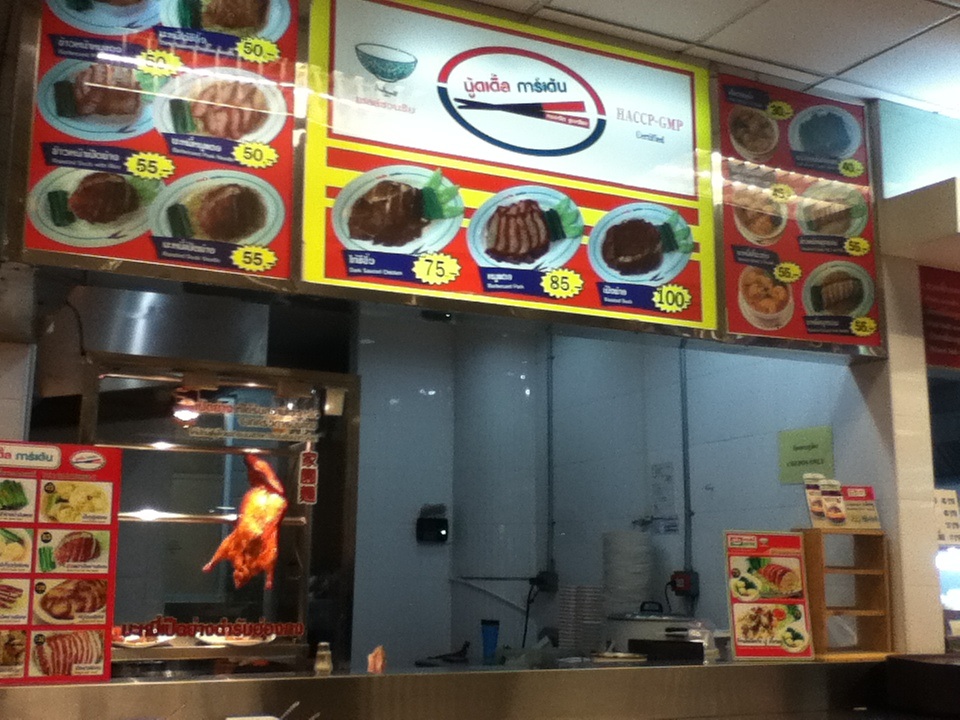 空港の飯屋(フードコート)も有って、安いし美味い!ライスに2種類のおかずが付いて35バーツ(105円)。パラダイス!