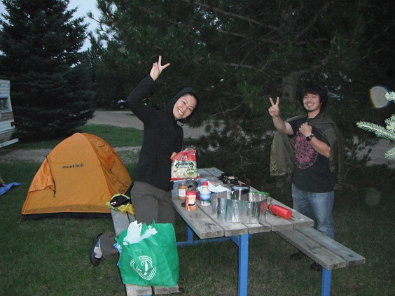 それから18キロくらい走ってLacombeという街のキャンプ場でキャンプ。3人で15ドルです。ヤッパリ人数が多いと安く済みますね。