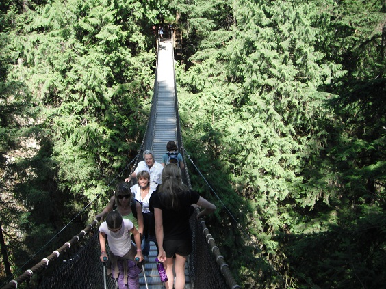 バスでダウンタウンまで出て、Seabusでノース・バンクーバーへ。ロンズデールのバスターミナルから229に乗ってLynn Valleyへ。20分くらいですかね。吊橋はCapilanoが有名なんですが、ボッタクリ値を払わされますし、Lynnの方は多少短いのですが無料です。