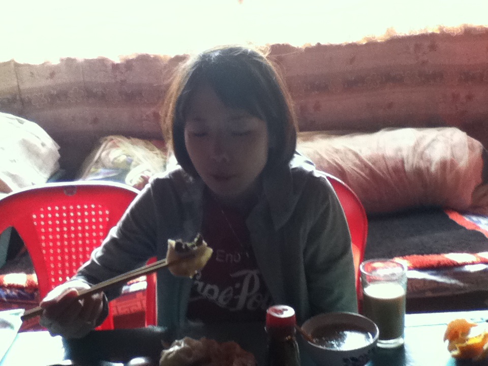 昼飯はチベットりに肉モモを。コウイチは肉モモの旨さに感動!