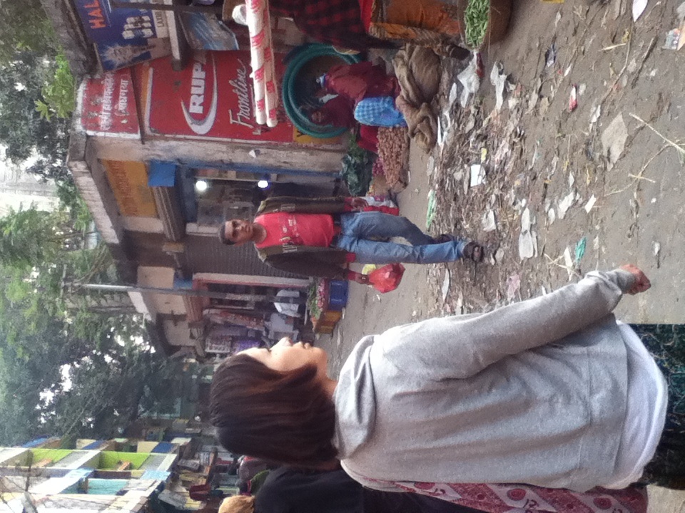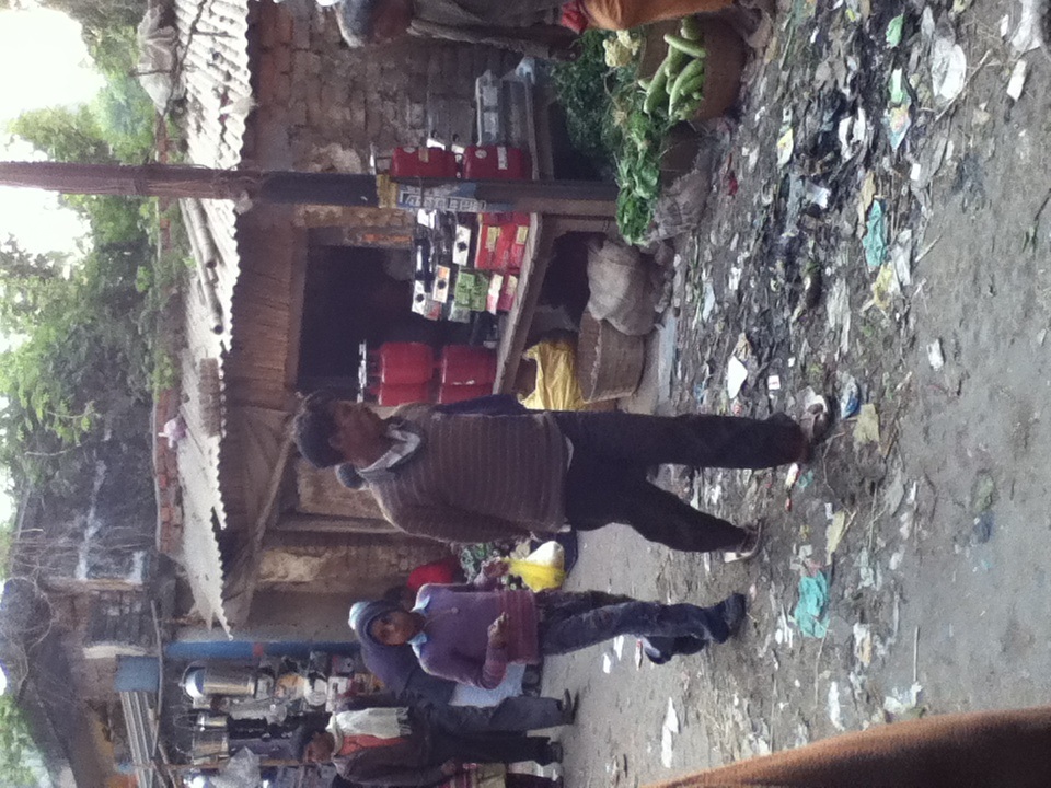 玉ちゃんと連れ立ってお茶でも。途中にゴミ溜めがあってそこには牛が寝っ転がっている。これが、インド。