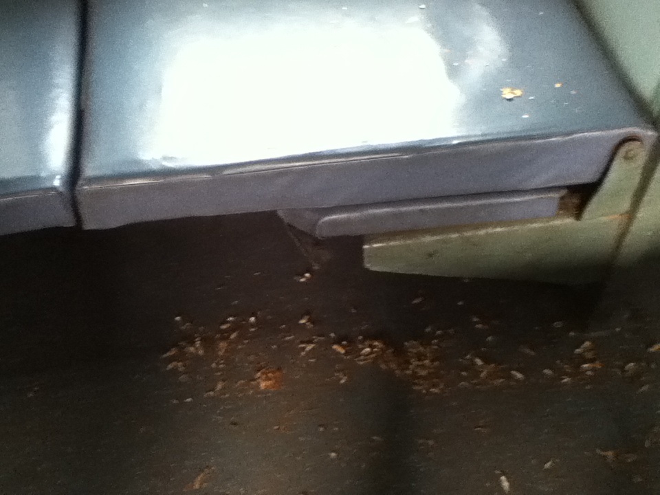 まぁ、出発前に清掃員が箒がけしてゴミを車両から掃き出していたけど、車両内とは思えないほどのゴミ多さ。