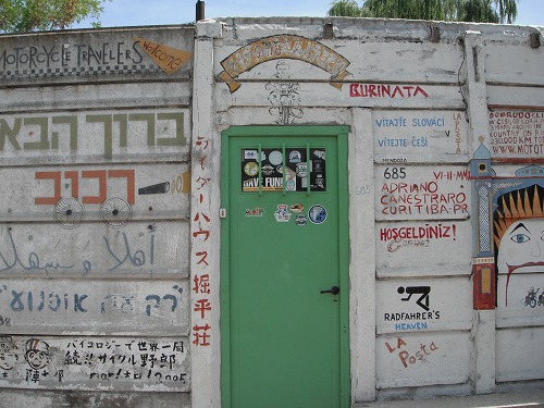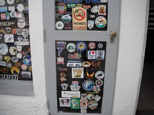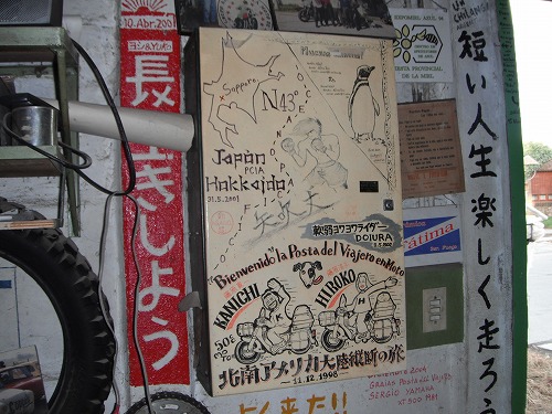 ホルへさんは昼寝中ということでモニカさんが対応してくれました。中もライダーの寄せ書きだらけです。日本人ライダーの寄せ書きも多いですね。藤原夫妻、どいうらさん、石澤夫妻などなどWTN-Jでおなじみの方々の寄せ書きも。