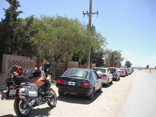 San Antonio Oesteのガソリンスタンド「YPF」にて給油、と思ったら、ものすごい行列。向かいの「SHELLしかし」には行列が無いので行ってみると「ガソリンは無し(No Hay Bafta)、」との張り紙が。あの行列に並ぶとなると、1時間は待ちますね。しかしこの先のスタンドにガソリンが無い場合を考えて、給油することに。