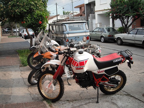 何回か道を訊ねて、ようやく軌道に乗りました。店の前には何故かピカピカのYAMAHA XT600 TENEREの第一世代です。すげぇー。4時ごろに到着。ここはバイクの修理、バイクの海外発送エージジェント、宿などなどとライダーには強い見方なんです。ベッドもテントも同じ値段なのですが、ダニに刺されたくないのでテントにしました。