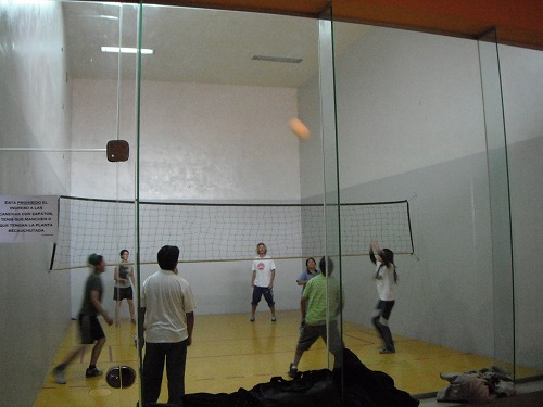 4時から学校主催のバレーボール・クラブに参加。ボリビアのバレーボールは、手足頭など体のどの部分を使ってもよく、スカッシュみたいに壁にぶつけて跳ね返してもいいんです。ちょっとカジュアルで気軽にプレーが出来きて楽しいですね。6時まで2時間楽しみました。
