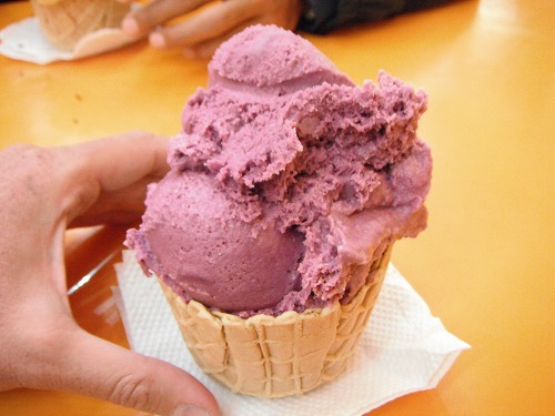 チェックインをして荷物を部屋に入れてメルカドへ昼飯。それからBin Bomで山盛りアイスをまた食べて「8月6日通り」へ。遠くに雪山も見えます。