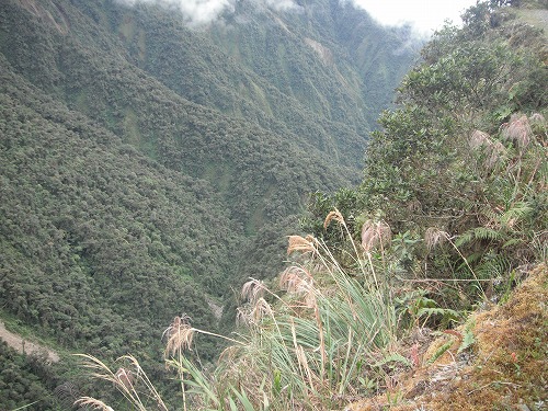 コロイコ(Coroico)に向かうにはミラフローレスからラパスを出ます。一旦標高4,000メートル以上まで上がりそこから2,000メートル以下まで降りていきます。