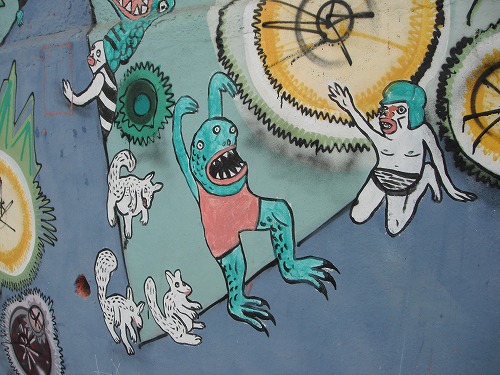 バルパライソは海岸からいきなり山が連なるという地形に発展した街。急斜面に家が牡蠣のようにへばりつく感じです。色とりどりの家、落書きのレベルを超えた落書き、市民の足として利用される「アセンソール(坂を上下するケーブルカーみたいなの)」などなどが見所。街並み全体が世界遺産として登録されている、らしい。海と青空とのコントラスト映えて美しいはずだ、が、しかし、今日は曇り空。