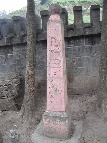 この寺院は数年前に誰かのブログで写真を見て、すっごくキレイだなぁと思ったんです。何処になるんだろう?と思ったらコロンビア。コロンビアの何処にあるのか知らなかったのですが、カルタヘナで調べてイピアレス近郊にあることが判明。ずっと訪れたかったところなんです。駐車場にバイクを停めてしばらく歩きます。ちょっと下に下がって行きます。何故だか小さなオベリスクに「las Lajas」と刻んであります。なんで?