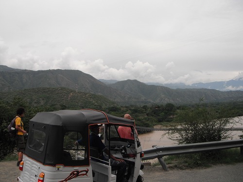 サンタ・フェの見所といえば「Puente de Occidente」です。なんか歴史のある吊橋だそうです。スーパーで歩いていけるのか?と聞いたら、それは遠いとのこと。トゥクトゥクを無線で呼んでくれました。片道7,000ペソ。安いのか高いのか・・・。まぁ、トゥクトゥクに乗れるから良いか。ヒツジも喜んでますしね。