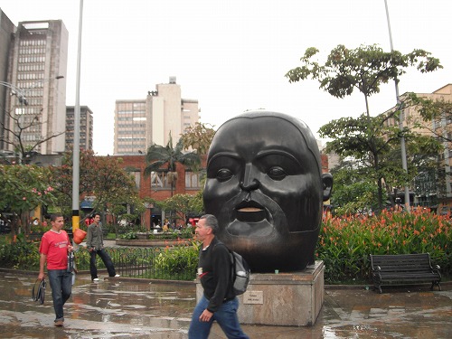 しかし食後のコーヒーを飲みながら話し込んでいたら、雨が・・・。かなり降ってます。しばらく雨脚が弱まるのを待ってちょっと散歩。例の変な彫像がある公園に行きました。写真を撮っていたらまた雨脚が強まったのでメトロの高架下で雨宿り。そうしたら教会の勧誘が来ました。スペイン語わからんちゅうに。