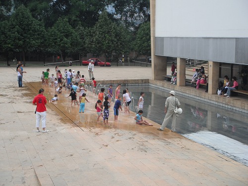 We walked through Metro Universidad and Hospital. Kids were playing with water in the plaza. What we dound out here was that there was no water tank on the top of houses. Water supply is plenty in this city and there is enough water pressure. I heard that those electricity plants (water generated) around Medellin are supplying 65% of electricity of entire Colombia.