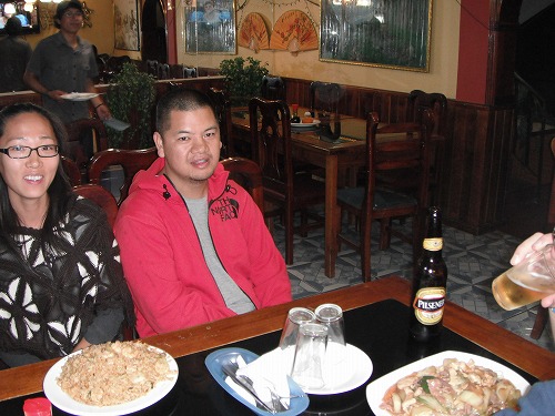 結局中華になりました。コンボ(ドリンク付)で3.65ドルとエクアドルでは高いものを頼みましたが、なんと大盛り。凄い量です。最近食べすぎで太り始めたのでダイエットと思っていた矢先なのに…。ジーが頼んだハーフチャーハン(ドリンク付)2.50ドルも大盛りです。どこがハーフなんだろう???味もそこそこでみんな満腹。ビールも中ビンくらいのサイズで1.25ドルと流石に安いですね、エクアドル。