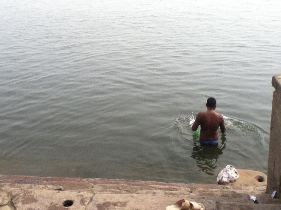 ワシらがワイワイ、ガヤガヤしている横では、インド人のおっさんがバタフライ的に水をバシャバシャさせながら沐浴!! あれじゃあ水大量に飲んでるだろうに…。