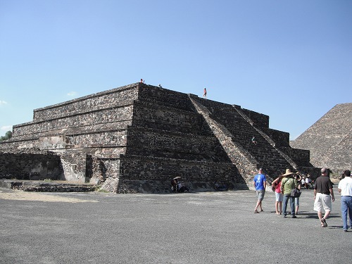 月のピラミッドまで歩いて日陰で一休み。ここからピラミッドを見上げると中々のものです。物売りのオジサンさやって来て「ほとんどタダ」と言っています。いくらか聞いたら「一万円」と。たかいよ!ジョジョの石仮面ぽいのがあったのですが、流石に運べないので買わずにしばらくオジサンと話してました。 まあ、なんだかんだで楽しかったですが、遺跡という感じがしなく考古学興味は満たされなかったですね。