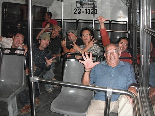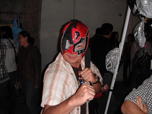 夜はメキシコプロレス、ルチャリブレ(Lucha Libre)を見に行きました。シゲさん、ブライアン、エルエロい子、マコッチ、ヒロくん、クワンさんとワシの7にんです。バスに乗って行ったのですが、途中で出会ったおっちゃんが色々親切に会場まで案内してくれて、チケット購入まで助けてくれました。しかし、最後はチップくれと。そう来たか…。細かいのがなかったので、50ペソ渡しときました。