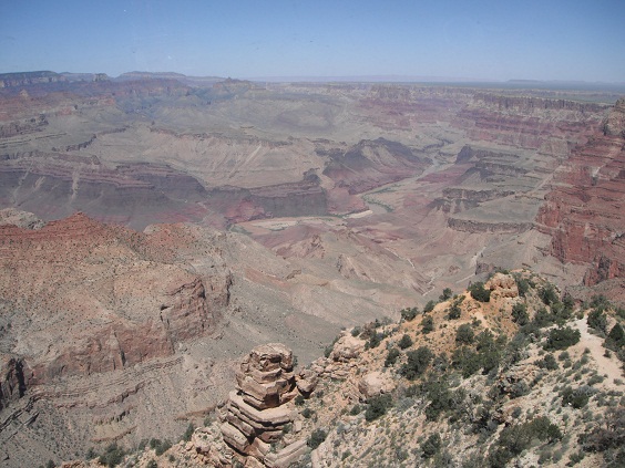 デザートヴュウ(Desert View)でサウスリムと最初の絶景です。見晴台もあってなかなかいいですね。