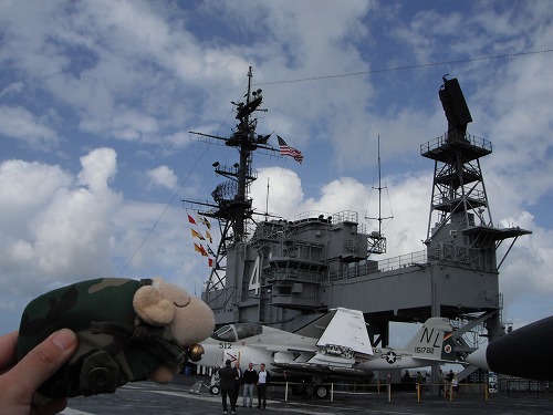 空母ミッドウェーは1945年に竣工したので、ミッドウェー海戦は戦っていませんが、長らく横須賀を母港としていたので日本にも馴染みの深い空母ですね。退役したとはいえ本物の空母に上がれるなんてそう機会がないですから、興奮ですね。